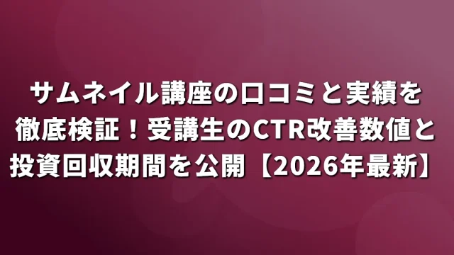 サムネイル講座の口コミと実績を徹底検証!受講生のCTR改善数値と投資回収期間を公開【2026年最新】